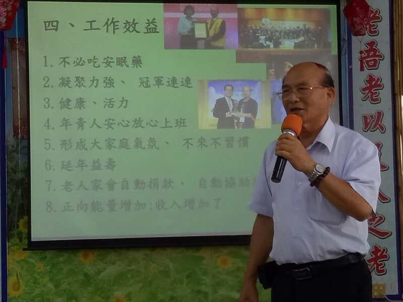 首先竹森社區(qū)理事長介紹了社區(qū)日間托老情況。竹森社區(qū)共有145名老人,其中最大的年齡93歲,平均年齡85歲。每周五天都會(huì)有45名老人會(huì)來社區(qū)參加活動(dòng),活動(dòng)期間由志工負(fù)責(zé)接送和照顧。老人們主要在社區(qū)進(jìn)行唱歌、做環(huán)保手工等活動(dòng)。