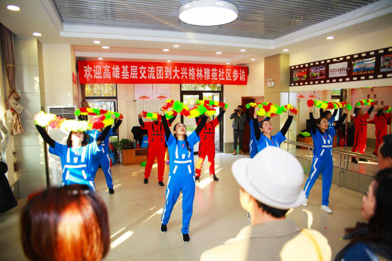 ??? 大興區臺辦消息:11月4日,臺灣高雄基層社區交流團一行20人到大興區黃村鎮格林雅苑社區參觀交流。
