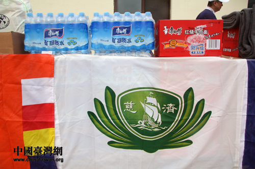 臺灣慈濟基金會捐助的方便面和水。(中國臺灣網記者?王怡然?攝)
