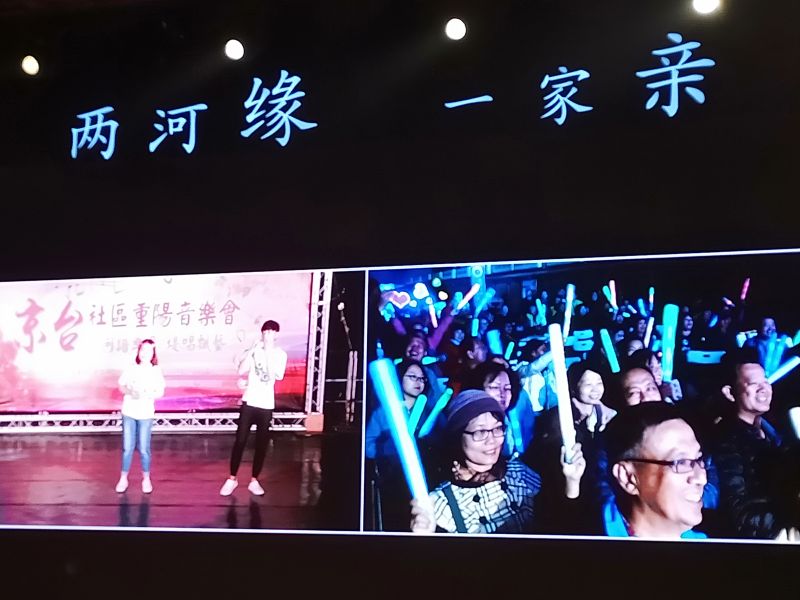 10月13日晚,恰逢中華民族傳統節日重陽節來臨之際,“咱的節日—京臺社區重陽音樂會”視頻連線活動在豐臺右安門街道和高雄河堤社區同步舉行。雖然當天北京的氣溫很低,但現場的熱烈氣氛接近沸騰。此次活動采用視頻連線的方式,在右安門的“涼水河”和河堤社區的“愛河”廣場同步舉行,兩岸同胞以“河”結緣,通過視頻互動的形式,把相隔2000多公里的豐臺與高雄連接在一起,讓兩地居民共同歡度重陽佳節。