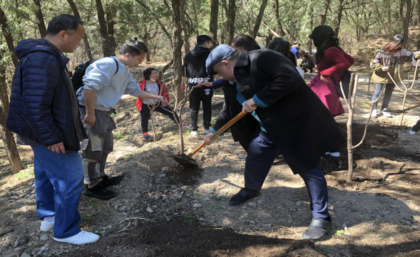 海淀區臺辦主任王鋒,北京臺資企業協會海淀分會理事、部分在京臺生臺青參加此次植樹活動。(海淀區臺辦)