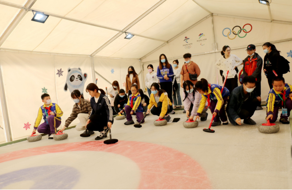 在活動啟動儀式上,兩岸青年為北京冬奧會送上祝福。臺灣青年志愿者服務隊代表陳文成與電廠路小學學生代表共同更換學校冬奧倒計時牌。在參觀電廠路小學“小小冬奧博物館”之后,電廠路小學冰球隊、冰壺隊的“小教練”們生動講解了冬季運動項目知識和冰球冰壺比賽規(guī)則。兩岸青年隨機分成兩隊,開展了陸地冰球友誼賽,兩岸青年以球會友,在比賽中相識、在協(xié)作中相知。