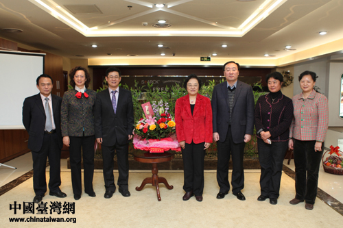 中國臺灣網12月30日北京消息? 12月27日,全國政協副主席、臺盟中央主席林文漪一行前往在京臺資企業新世紀寶島眼鏡商貿有限公司走訪慰問。