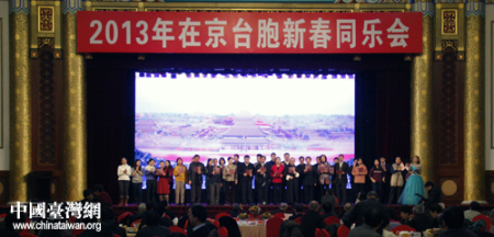 ??? 臺盟中央、全國臺聯今(25)日在京共同舉辦2013年在京臺胞新春同樂會。在京定居的臺胞代表、在京投資經商的臺灣企業界人士、在京求學的臺灣學生與首都各界300余人歡聚一堂,共敘親情、友情,喜迎新春佳節。(中國臺灣網?王怡然?攝)