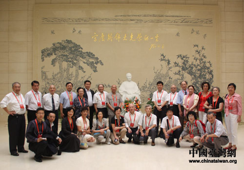 黃埔軍校同學(xué)會(huì)的老校友與親友們?cè)谒螒c齡先生像前合影。(中國(guó)臺(tái)灣網(wǎng) 李丹 攝)