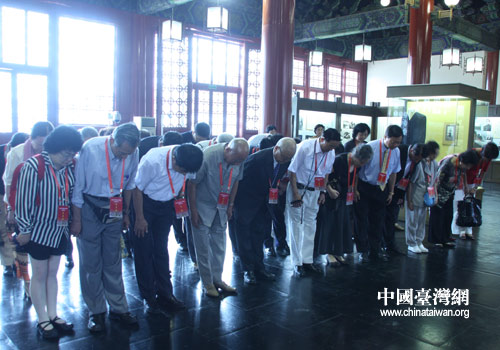 9月5日下午,來自海內外的黃埔組織代表、黃埔同學及親友來到北京中山公園,一同拜謁了孫中山先生像,并向孫中山像敬獻花籃。(中國臺灣網 李丹 攝)