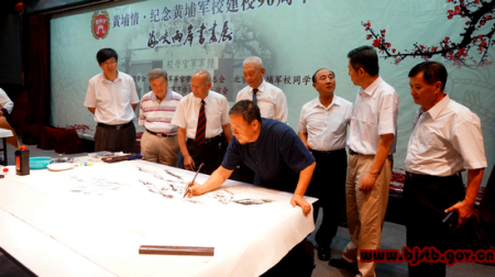 ??? 7月26日,由黃埔軍校同學會、臺灣陸軍軍官學校校友會和北京市黃埔軍校同學會聯(lián)合主辦,北京市臺灣同胞聯(lián)誼會協(xié)辦的“黃埔情?紀念黃埔軍校建校90周年海峽兩岸書畫展”在北京臺灣會館開幕。來自海峽兩岸的退役將軍、書畫藝術家,在京部分黃埔同學及親屬,中華海外聯(lián)誼會、北京市黃埔軍校同學會代表約100余人出席了開幕式。