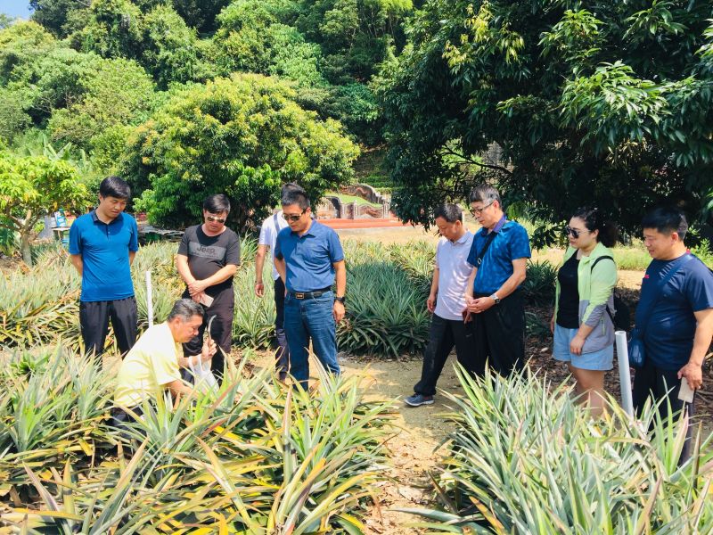 9月24日上午,延慶鄉村交流參訪團來到高雄市大樹區休閑農業區。負責人熱情地向參訪團一行介紹了休閑農業經營發展情況,并帶領參訪團成員到農場實地參觀、摘鳳梨果,在親身體驗中進行了經驗交流和技術傳授。