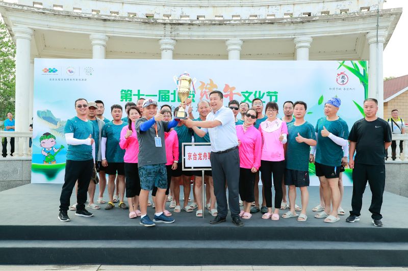 ?????? 在融水儀式進行的同時,作為端午文化節的傳統項目,京臺媯水龍舟交流賽在夏都公園火熱開賽,為海峽兩岸民眾交流互動搭起了“龍舟友誼之橋”。10名來自高雄的龍舟隊員與10名延慶的社區居民組成京臺龍舟聯隊參加比賽。這支特殊的隊伍從組建到參賽,僅用了2個小時。在經過簡單的熱身、配重排座位和1次水上排練,就在比賽中配合默契、齊心協力,贏得了岸邊觀眾的熱烈掌聲。