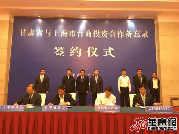 在前期上海臺企與甘肅有關部門多次對接的基礎上,上海市臺辦、上海市臺協和甘肅省臺辦、甘肅省經合局共同簽署了投資合作備忘錄。內容涵蓋上海臺企南僑集團食用油原物料采購、永和公司食品采購及加工、連鎖工委會連鎖品牌服務推廣等14個投資項目,投資意向金約3億人民幣。