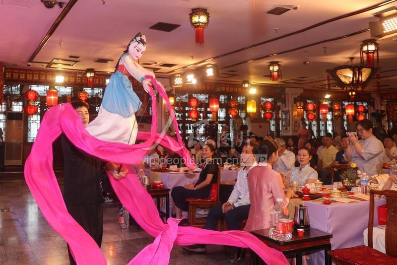 2023年9月6日, 演員在北京舉辦的“茶之緣”兩岸茶人品茗會(huì)上表演木偶戲。