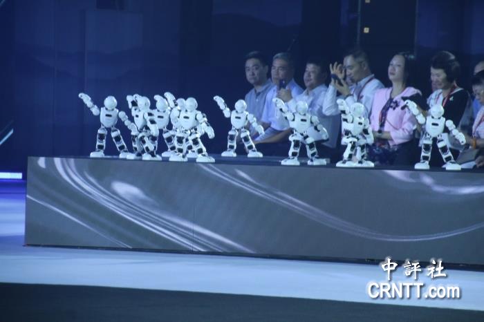 主持人介紹智能機器人(中評社 李婷萱攝)