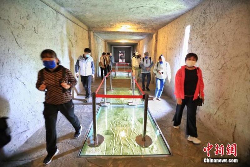 要塞入口處,當年被日軍抓來修筑工事、罹難的平民,白骨被安置在玻璃地坑中。