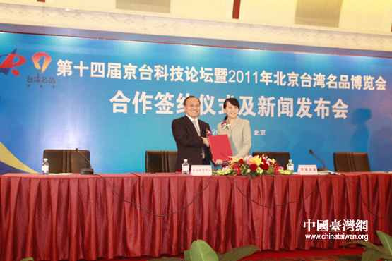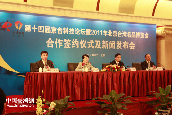 第十四屆京臺科技論壇暨2011年北京臺灣名品博覽會新聞發布會現場(中國臺灣網 陳寧 攝)