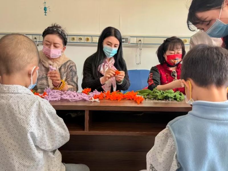 3月18日,昌平臺(tái)協(xié)吳宜蓁會(huì)長偕同昌平臺(tái)協(xié)會(huì)員們,與白血病小朋友們圍坐在一起,開啟了一場充滿溫情的手工藝品制作活動(dòng),耐心引導(dǎo)、手把手教孩子們?nèi)绾沃谱魇止に嚻贰4蠹乙黄鹩貌始堈郫B出栩栩如生的花朵,每一件手工藝品都傾注了大家的心力。在這個(gè)過程中,歡聲笑語回蕩在病房,孩子們的臉上洋溢著純真的笑容,那笑容驅(qū)散了病魔帶來的陰霾,也讓在場的每一個(gè)人都感受到了愛的力量。