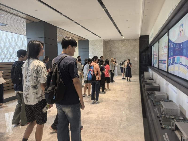 參訪團首站抵達交控集團。在智能交通展廳,工作人員通過沙盤演示、數據可視化模型等,系統介紹了集團在智慧公路、車路協同、交通大數據等領域的創新實踐。學生們深入了解了交控集團在交通領域的創新技術與卓越成就,對交通行業的飛速發展有了直觀且深刻的認識。