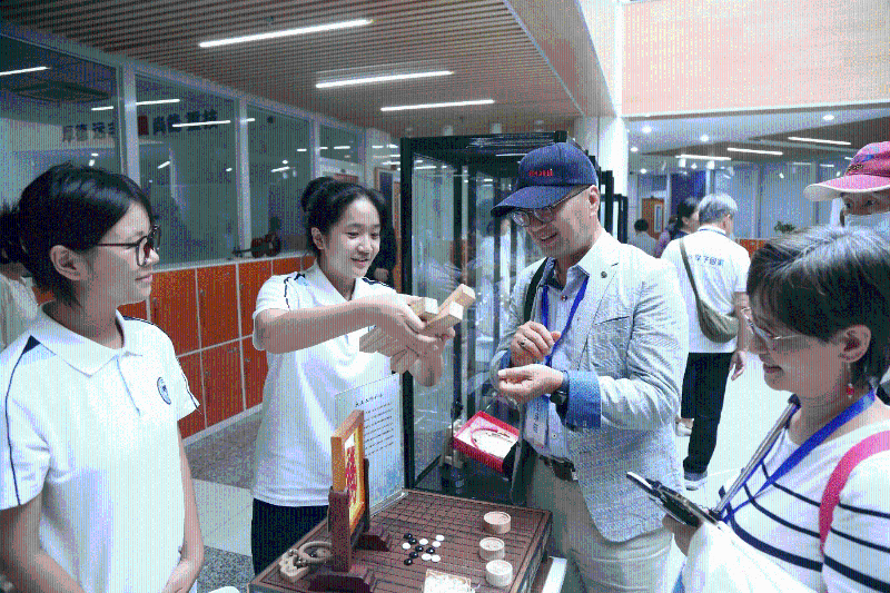 豐臺區職業教育中心學校學生向臺灣來賓介紹木工工坊作品(圖源:團結報)