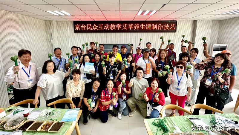 大家首先走進大峪街道文化活動中心,實地了解門頭溝基層社區(qū)民眾的點滴生活場景。在非遺體驗館,臺胞們饒有興趣地體驗了中華非遺技藝“艾草錘”制作技藝,社區(qū)老師向臺胞介紹了艾草在中醫(yī)養(yǎng)生歷史中的地位,手把手教授了“艾草錘”的制作技藝和使用方法。隨后大家你教我學,迫不及待開始了動手制作艾草錘,親身體驗傳統(tǒng)養(yǎng)生文化的魅力,現(xiàn)場溫馨有愛,一片歡聲笑語。