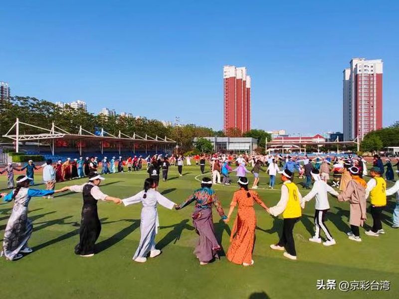 4月24日,“同根相融 攜手前行”京臺(tái)傳統(tǒng)體育項(xiàng)目交流活動(dòng)在石景山區(qū)黃莊職業(yè)高中舉辦。在石景山區(qū)參訪的臺(tái)灣基層交流團(tuán)團(tuán)員、黃莊職業(yè)高中拉薩班同學(xué)、青年代表共計(jì)100余人參加活動(dòng)。