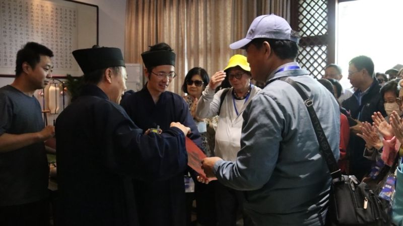 “摸石猴”“打金錢(qián)眼”“拜太歲”……白云觀內(nèi)還有許多民俗活動(dòng),參訪團(tuán)成員們積極參與其中,體驗(yàn)傳統(tǒng)道教文化的魅力。值得一提的是,觀內(nèi)工作人員特別為大家準(zhǔn)備了手寫(xiě)“福”字,“福”文化歷史悠久,與中華民族同生,是維系各民族情感、團(tuán)結(jié)各階層、推動(dòng)中華民族不斷發(fā)展前行的最強(qiáng)有力的文化紐帶,大家手持“福”字、面露笑容,展現(xiàn)了京臺(tái)兩地人民對(duì)“福”的共同追求。