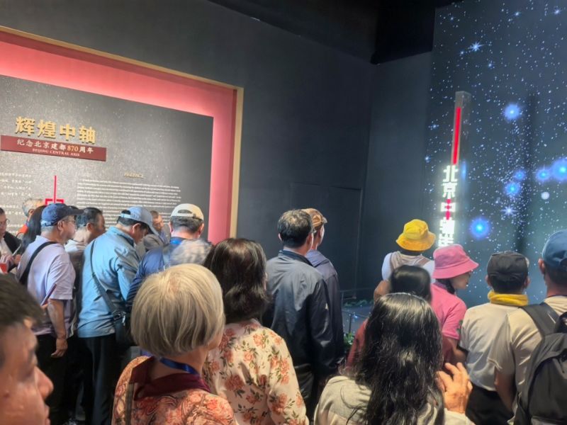 為紀(jì)念北京建都870周年,首都博物館舉辦了“輝煌中軸——紀(jì)念北京建都870周年特展”,運(yùn)用數(shù)字化展陳手法和開(kāi)放式展項(xiàng),以“中軸剪影、中軸精粹、中軸全覽”三部分內(nèi)容,全面展現(xiàn)了北京中軸線的前世今生和北京城市發(fā)展歷程,參訪團(tuán)成員對(duì)北京中軸線的壯美秩序、思想源流、歷史發(fā)展、公眾化進(jìn)程以及保護(hù)工作進(jìn)行了系統(tǒng)學(xué)習(xí)。