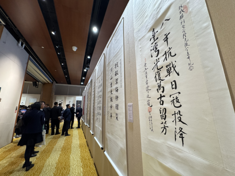 現(xiàn)場(chǎng)共展出書法、國(guó)畫、油畫等作品80余幅,集中展現(xiàn)兩岸及港澳藝術(shù)家對(duì)民族歷史的深情回望與對(duì)未來(lái)的共同期許。一幅幅佳作或氣勢(shì)磅礴,或細(xì)膩動(dòng)人,既有對(duì)臺(tái)灣光復(fù)等重大歷史節(jié)點(diǎn)的深情再現(xiàn),也有對(duì)祖國(guó)山河、家園故土的深情描繪,生動(dòng)詮釋了臺(tái)灣與大陸之間不可分割的文化血脈,熱情謳歌了中華民族百折不撓、砥礪前行的奮斗歷程。