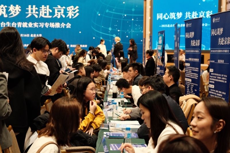 11月16日,由北京市人力資源和社會保障局、北京市國資委、北京大學、海淀區政府共同主辦的“同心筑夢 共赴京彩”2025年北京市臺生臺青就業實習專場推介會,在北京大學英杰交流中心陽光大廳舉行。活動吸引60余家首都優質企業及單位攜500余個就業實習崗位現場攬才,300多名在京臺灣學生和青年到場洽談。