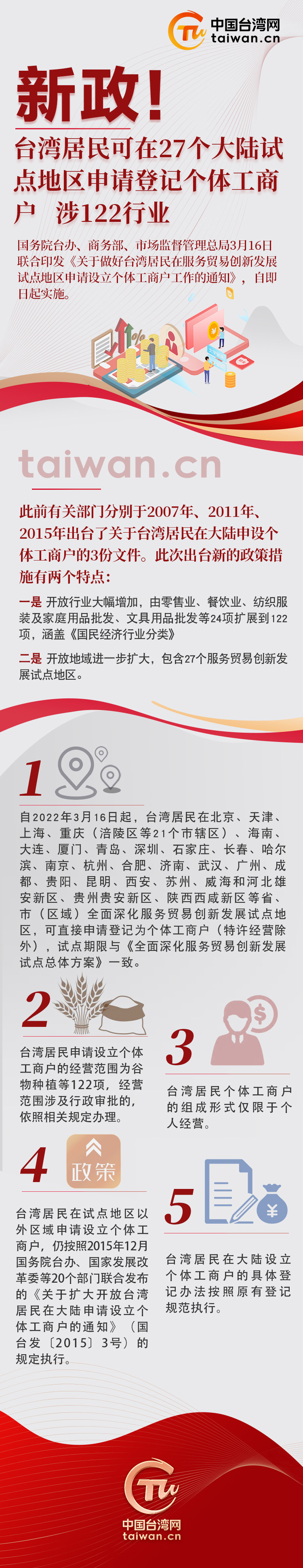 新政!臺灣居民可在27個大陸試點地區申請登記個體工商戶 涉122行業